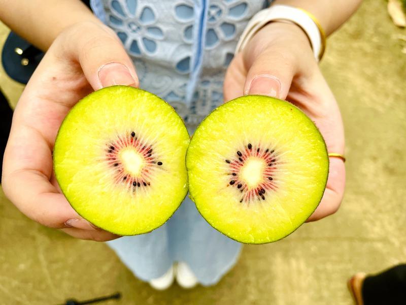 据了解,该农场种植的东红猕猴桃是红肉品种中的佼佼者,4月开花、9月成熟,采摘期可持续至10月,不仅抗病性强、产量稳定,耐储运性也十分出色。其果肉富含维生素C、膳食纤维及钾等矿物质,每100克果肉维生素C含量远超苹果、橙子,有“维C之王” 、营养界的“明星”等的美誉。