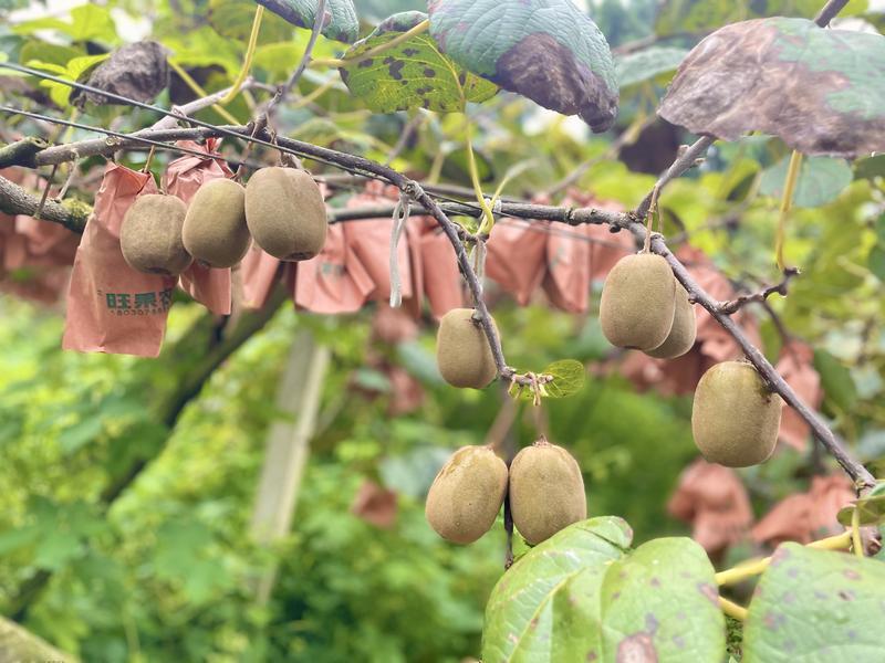 走进农场,翠绿藤蔓沿着支架延展,棕色纸袋包裹的猕猴桃将袋子撑得鼓鼓囊囊。果农们分工明确,采摘、搬运、装车有条不紊,一派忙碌的丰收景象。“果子长到一定个头就套袋,既能防虫害,又能保证色泽鲜亮、口感更佳。”农场管理人员刘洪秀拿起刚摘下的猕猴桃介绍。