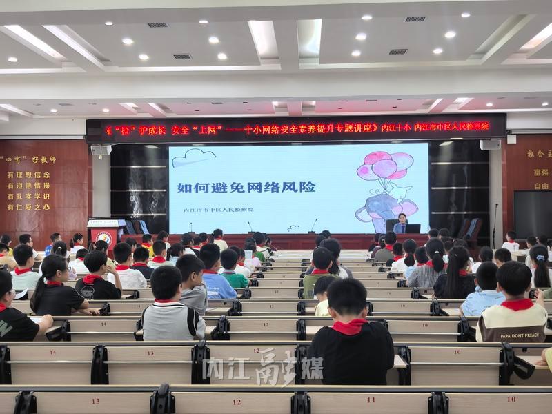 为提升未成年人网络安全意识和自我保护能力,9月12日,市中区人民检察院走进内江十小,为五年级的师生带来了以“‘检’护成长 安全‘上网’”为主题的网络安全素养提升专题讲座。