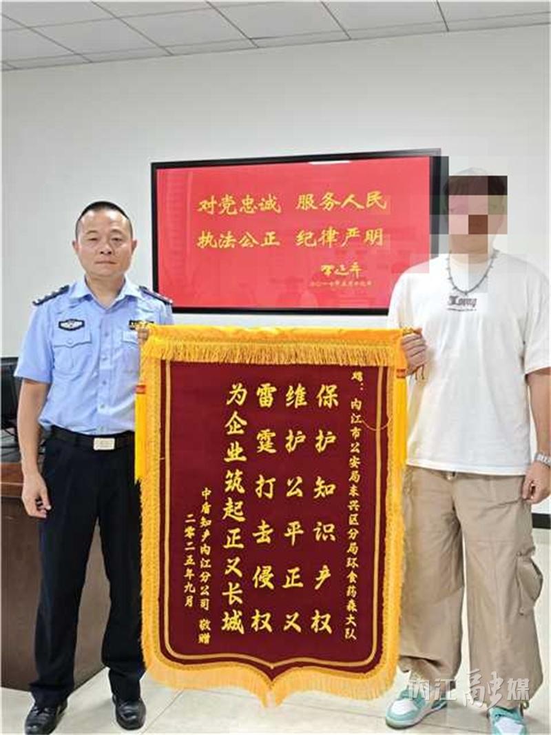 9月15日,某网络科技公司工作人员将一面印着“保护知识产权 维护公平正义 雷霆打击侵权 为企业筑起正义长城”字样的锦旗,送到内江市公安局东兴区分局民警手中。这面锦旗承载着辖区该网络科技公司的深深谢意,也见证了内江东兴公安在打击侵权犯罪、守护企业合法权益上的担当与作为。