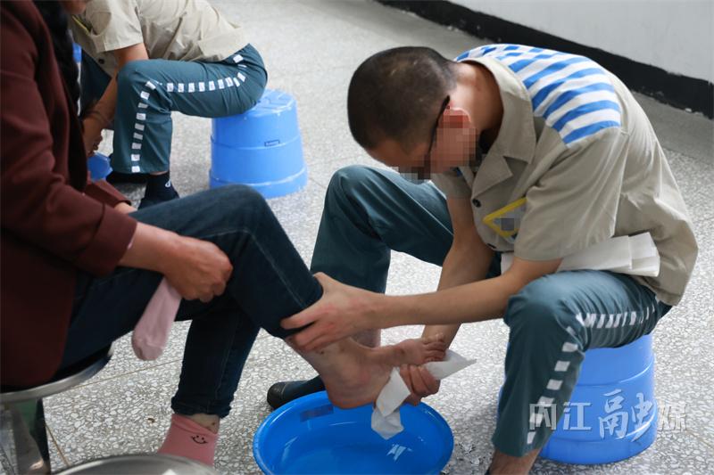 在改造成果展示后,罪犯与亲属围坐在一起,手紧紧相握,面对面倾诉思念。“妈,因为我……让您受苦了!”有的罪犯满怀愧疚,主动申请为亲属洗脚,弥补缺失的陪伴。