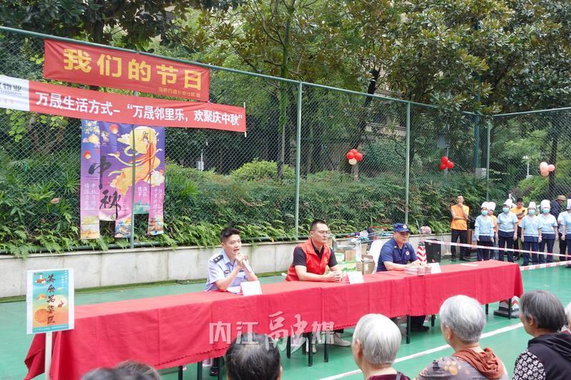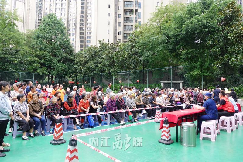 除了浓厚的传统韵味,活动现场更是一个多元化的便民服务平台。内江高新区高桥派出所民警耐心讲解反诈知识,内江高新区消防救援大队工作人员演示消防器材使用方法,高桥街道卫生院的义诊台前居民有序咨询,党员志愿者的义剪服务也深受欢迎。社区干部则巧妙地将医保参保、文明城市创建等政策宣传融入亲切交谈中。