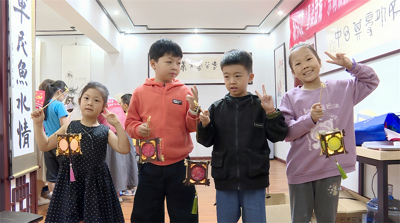 动手制作花灯将活动推向高潮。在志愿者耐心指导下,孩子们小心翼翼地剪裁、拼接、安装、装饰,一盏盏精美的小花灯在他们手中陆续亮起。七岁的龙彦泽自豪地展示着自己的作品说:“我要把这盏花灯送给家人,祝他们中秋节快乐!”八岁的李沁睿也兴奋地表示:“和这么多小伙伴一起过节特别开心,下次我还要来!”