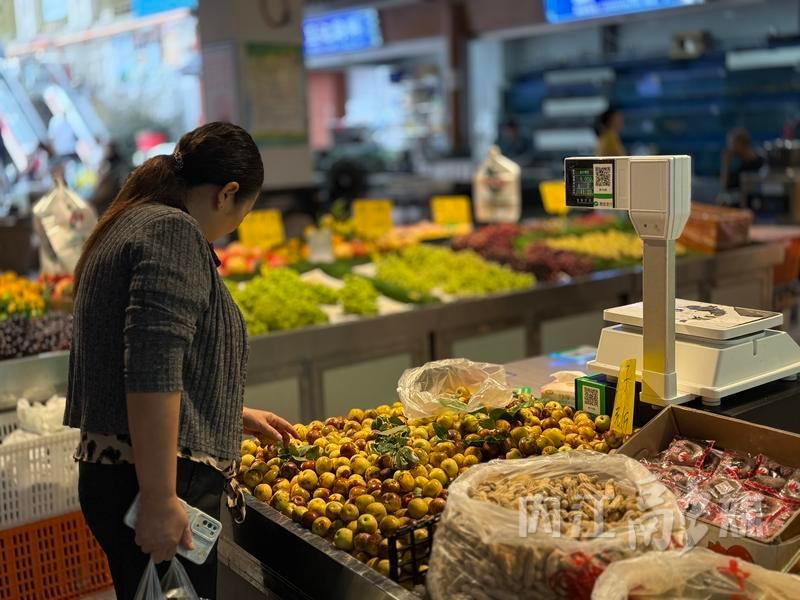 农贸市场同样很热闹。东兴区七彩汇农贸市场摊位前人头攒动,摊主周燕的摊位前,大枣、桂圆等应季水果摆得满满当当,她正忙着给顾客称重。“为了保证‘双节’期间供应充足,我们提前加大了货源储备,进了很多大枣、桂圆等应季水果。”周燕说,最近还补充了苹果、梨这类耐存放的水果,满足市民不同需求。