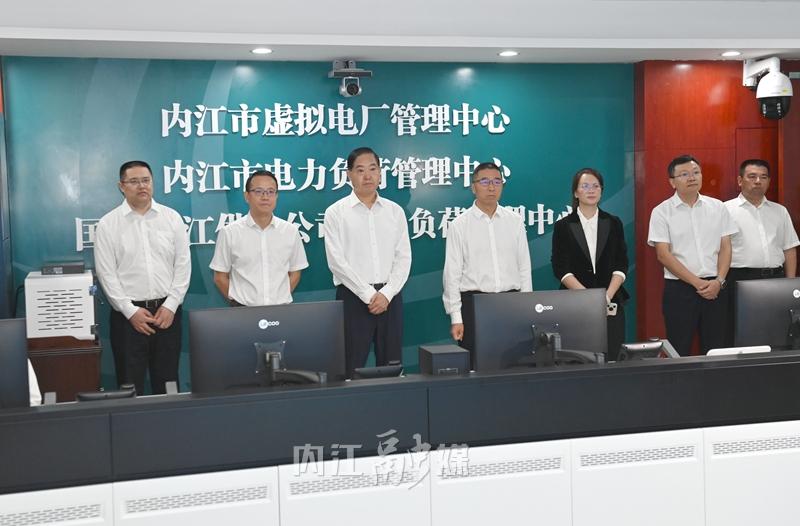 启动仪式前,邹自景、薛学深一行前往内江市虚拟电厂管理中心,调研内江市虚拟电厂平台建设情况,详细了解平台功能架构、资源接入及调控能力等情况。邹自景指出,虚拟电厂可高效聚合、优化调控能源资源,有效缓解电力供需矛盾、提升能源利用效率。要持续扩大资源接入规模,积极引导工业企业、商业楼宇、充电设施、储能装置等各类可调负荷资源广泛接入,不断提升虚拟电厂的聚合能力和调控水平。要建立健全运营管理机制,加快推动虚拟电厂规范高效正式运营,尽快发挥其综合效益。要走出去学习借鉴先进运营管理经验,结合内江实际加以创新应用,努力将其打造成为推动能源系统创新发展、实现绿色低碳转型的“新引擎”。