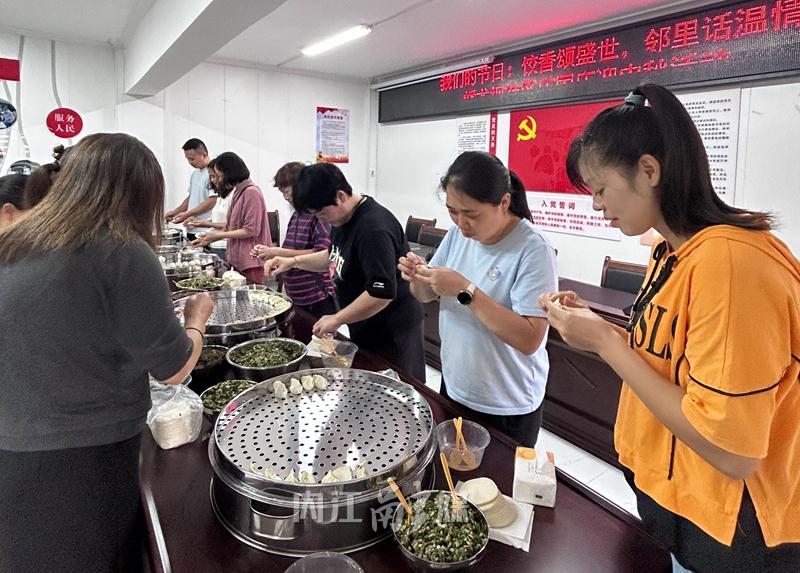 活动现场,工作人员早已提前准备好了饺子皮、馅料等食材工具。大家围在桌子旁,一边包饺子,一边分享着生活中的趣事,交流着包饺子的技巧,时不时传来阵阵笑声,一派热闹景象。社区干部则以此为契机,与居民们唠起家常,倾听大家对社区建设的意见和建议。