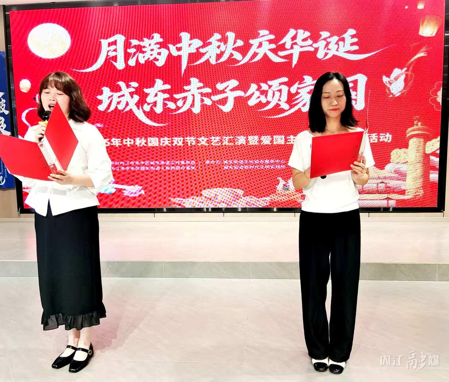 为热烈庆祝中秋、国庆双节,传承中华优秀传统文化,厚植爱国主义情怀,9月27日,市中区城东街道在望江瑞景小区举办“月满中秋庆华诞·城东赤子颂家国”2025年中秋国庆双节文艺汇演暨爱国主义教育主题活动。本次活动由城东街道主办、市中区文化馆协办,街道干部职工、社区“两委”干部、退休老干部及居民群众共60余人欢聚一堂,共庆佳节。