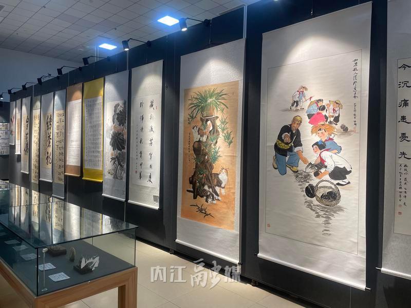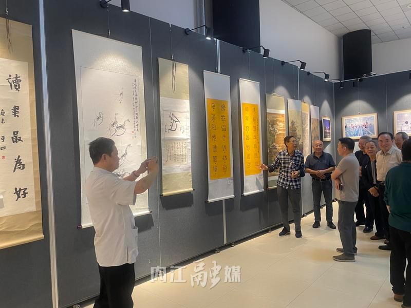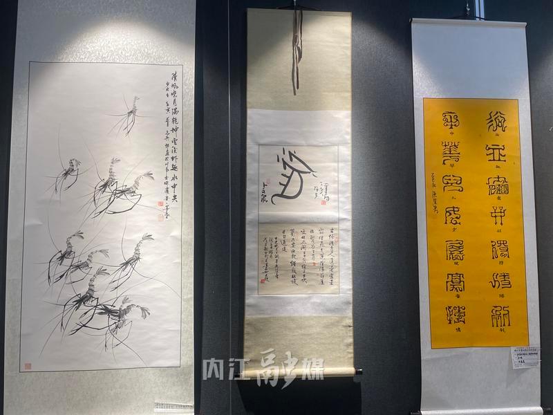 在书画展区的作品前围满了观众,笔锋遒劲有力的书法和栩栩如生的画作,不仅让大家感受到老一辈革命家的豪迈气概,也展现了内江籍艺术大师的风采。不少市民驻足欣赏,拍照留念。