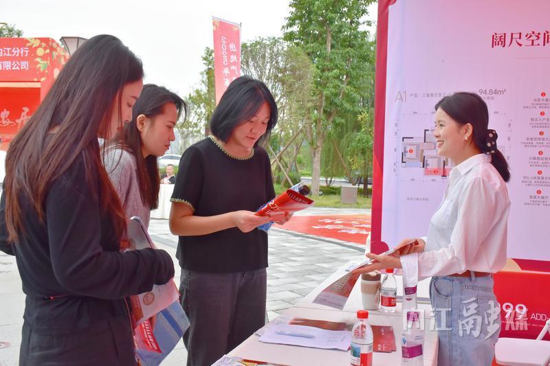 上午一大早,活动吸引了许多园区企业职工前往咨询了解。他们游走在各个展位前,仔细了解项目位置、周边配套设施、研究户型图,咨询销售价格和优惠政策。