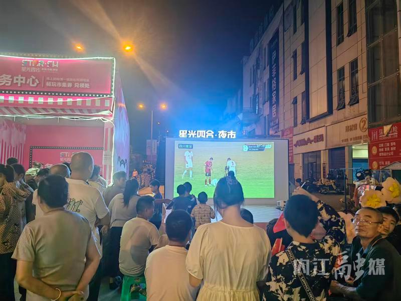 当晚,川超赛事转播成为夜市的“重头戏” 。大屏幕前早早聚集众多球迷,大家挥舞着小红旗,吃着特色小吃,屏息凝神关注着赛场上的每一个瞬间。“本来只是陪家人来逛夜市吃点东西,听说有川超直播,特意拉着朋友过来占位置!”市民张伟举着刚买的烤串,目光紧紧锁定屏幕,“这种露天看球的氛围太燃了,和大家一起欢呼呐喊,比在家看电视过瘾多了!”当内江队球员带球突破防线时,市民王利民激动地站起身:“作为内江人,必须为家乡球队加油!在夜市里既能享受美食,又能感受足球的激情,这个国庆过得太有意义了!”
