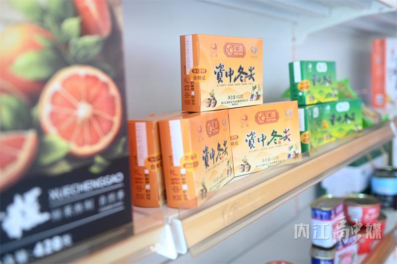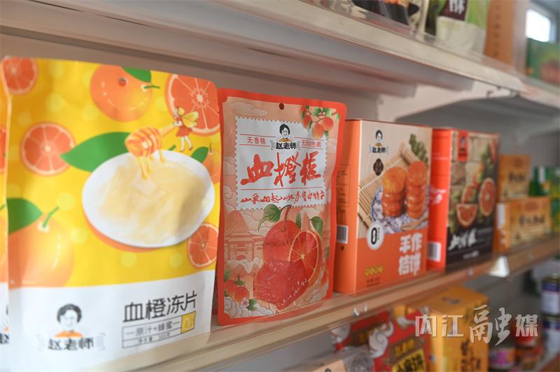 除这些“明星产品”外,资中血橙、麻辣兔丁、冷吃鲶鱼等也整齐陈列。从生鲜食材到加工食品,再到融入资中文化的文创衍生品,覆盖各类游客需求,即便挑剔的伴手礼选购者,也能在此找到心仪之选。