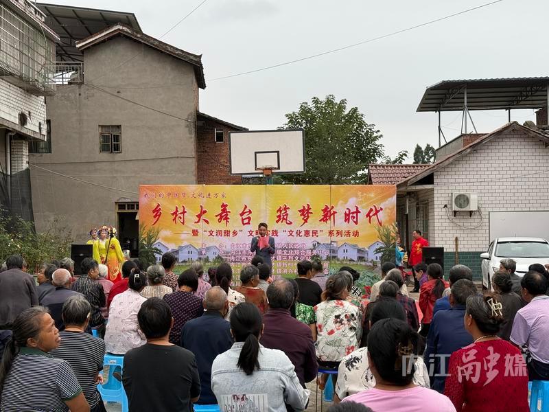 10月11日,“乡村大舞台・逐梦新时代”暨“文润甜乡”文明实践文化惠民活动在东兴区双才镇洪兴村精彩上演。本次活动由双才镇人民政府主办,吸引近百名村民齐聚一堂,共享家门口的文化盛宴。