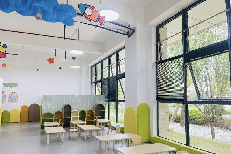 走进园区托育室,色彩明快的绘本区、安全环保的游乐设施与温馨整洁的午休室构成充满童趣的空间。围绕“专业、安全、贴心”核心标准,从硬件配置到软件服务,专为2~3岁幼儿打造设计托育环境。