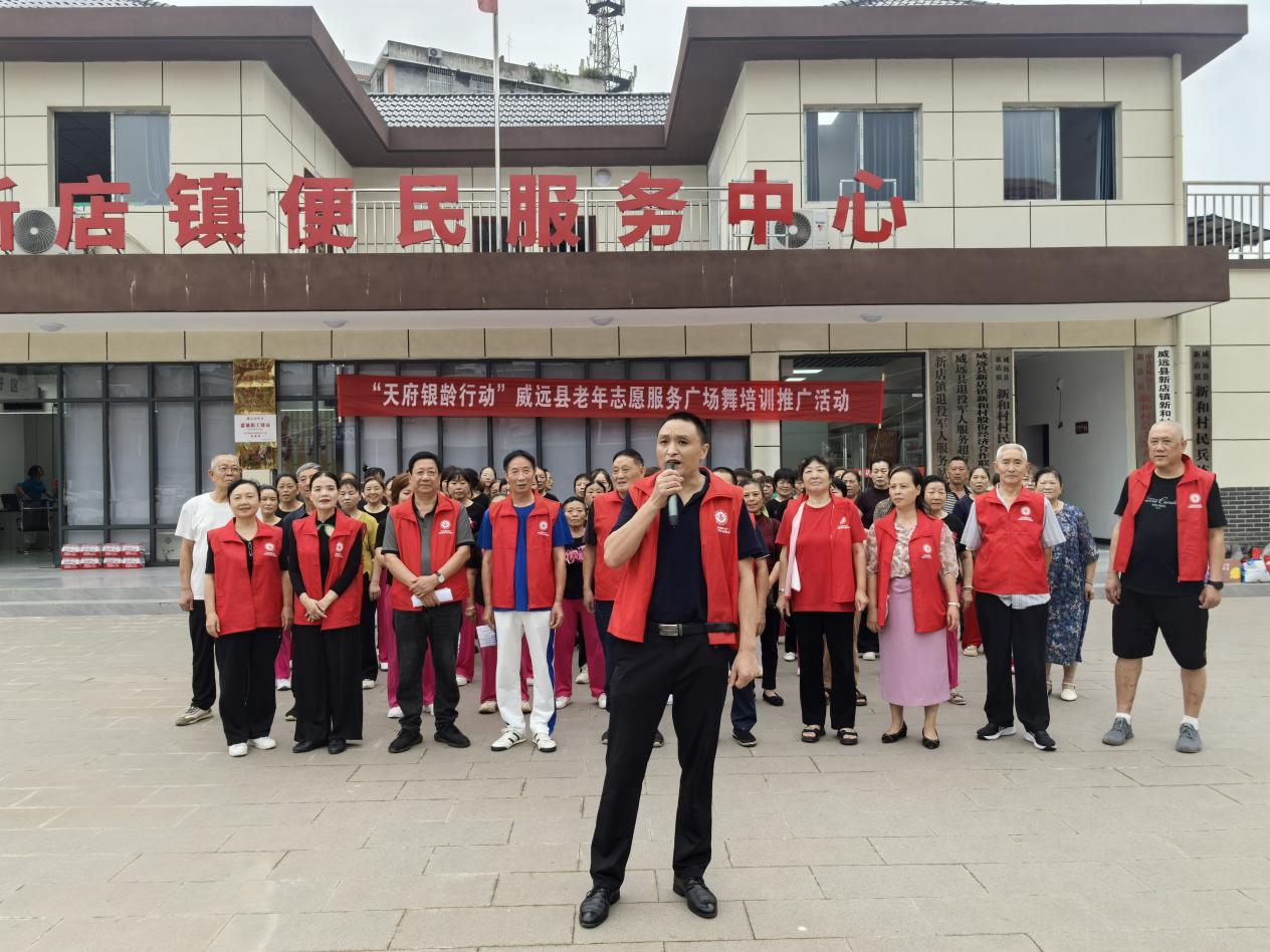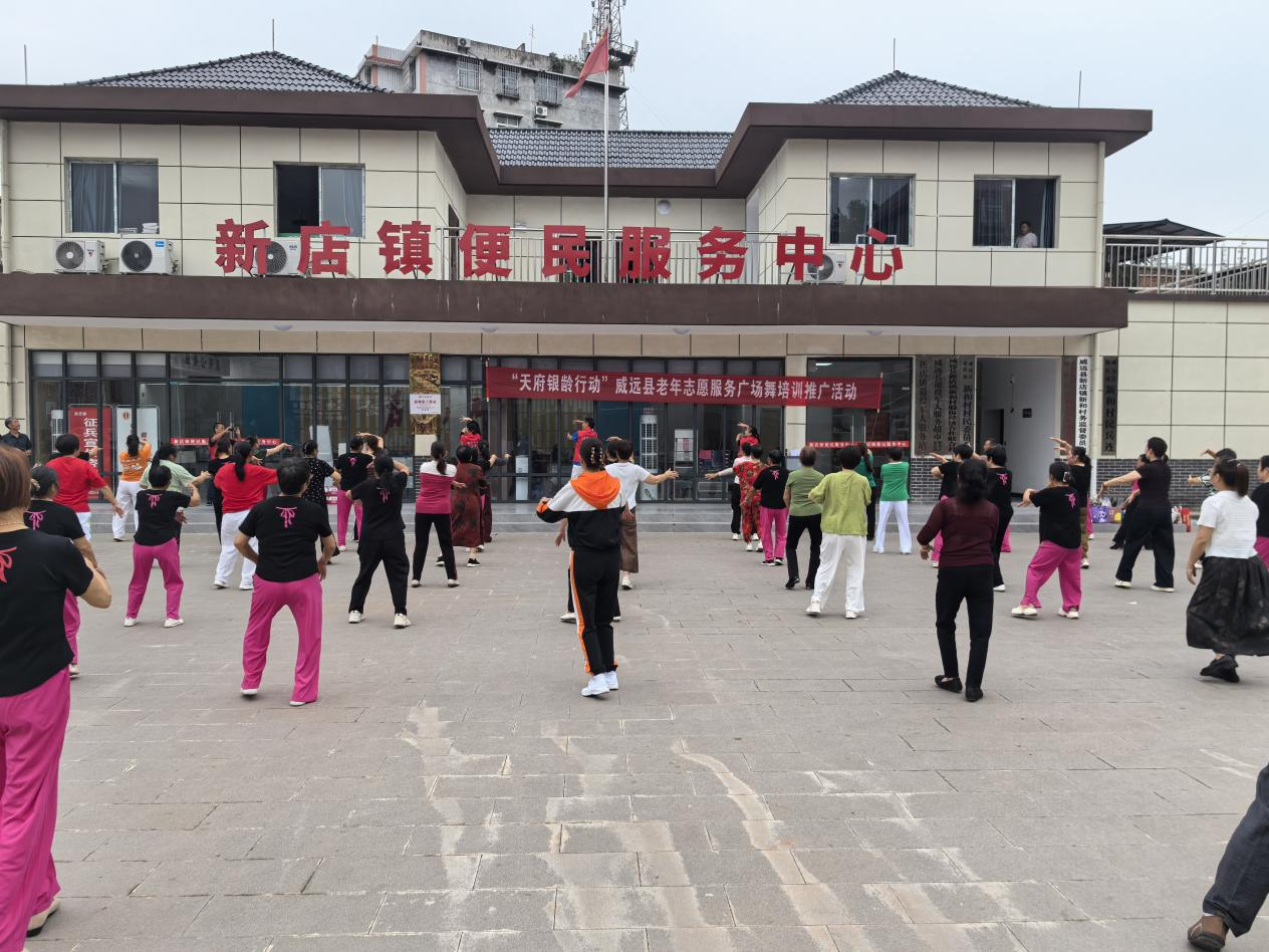 近日,由威远县老年人体育协会、威远县老科技工作者协会、新店镇社会事务和社会治理办、新店镇老年人体育协会、新店司法所联合举办,“天府银龄行动”威远县新店镇老年志愿服务广场舞培训推广暨民法典普法活动在新店镇新和村广场顺利开展。活动邀请全镇老年广场舞爱好者前来参与培训。