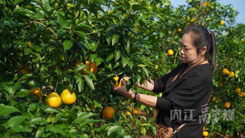 市民孙丽抱着满满一筐刚采摘的果冻橙笑着说:“我们是从威远县城专程赶来的,去年尝过这儿的果冻橙,果肉细腻多汁、酸甜可口,今天特意来当‘回头客’。”