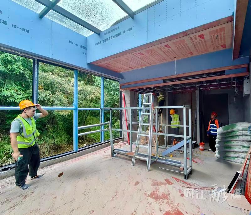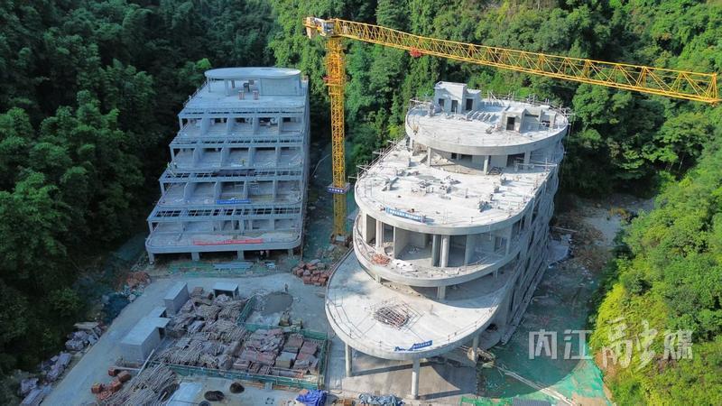 切割钢材、墙面抹灰、幕墙安装……位于威远县石板河旅游区的森林文化融合区项目,施工现场一片繁忙。目前,项目主体已完工,正在进行玻璃幕墙安装、装饰装修等工程。项目建成投用后,威远县将新增一处集“穹窿奇观+森林疗养”于一体的特色度假休闲新地标。