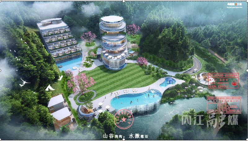 “君澜野奢”占地面积4723平方米,建筑面积2117.41平方米,包含生态文化展示室、接待室等7栋。目前,该区域正在开展危岩排危、场地整理、挡墙施工等前期工作,建成后可同时承载游客休闲观光与健康疗养需求。