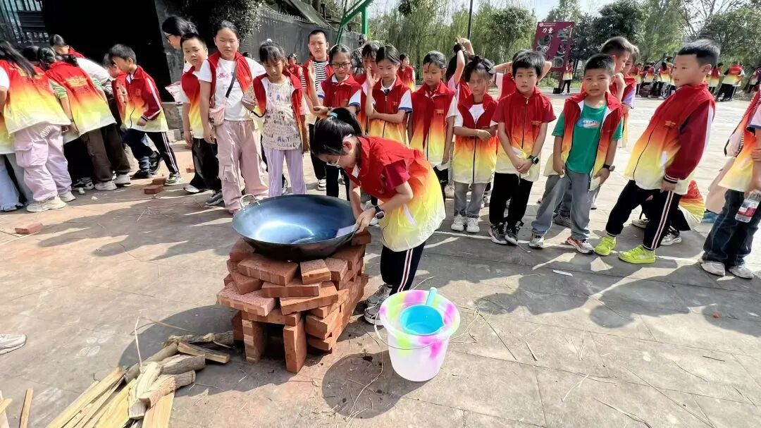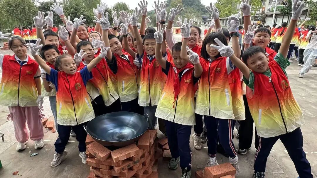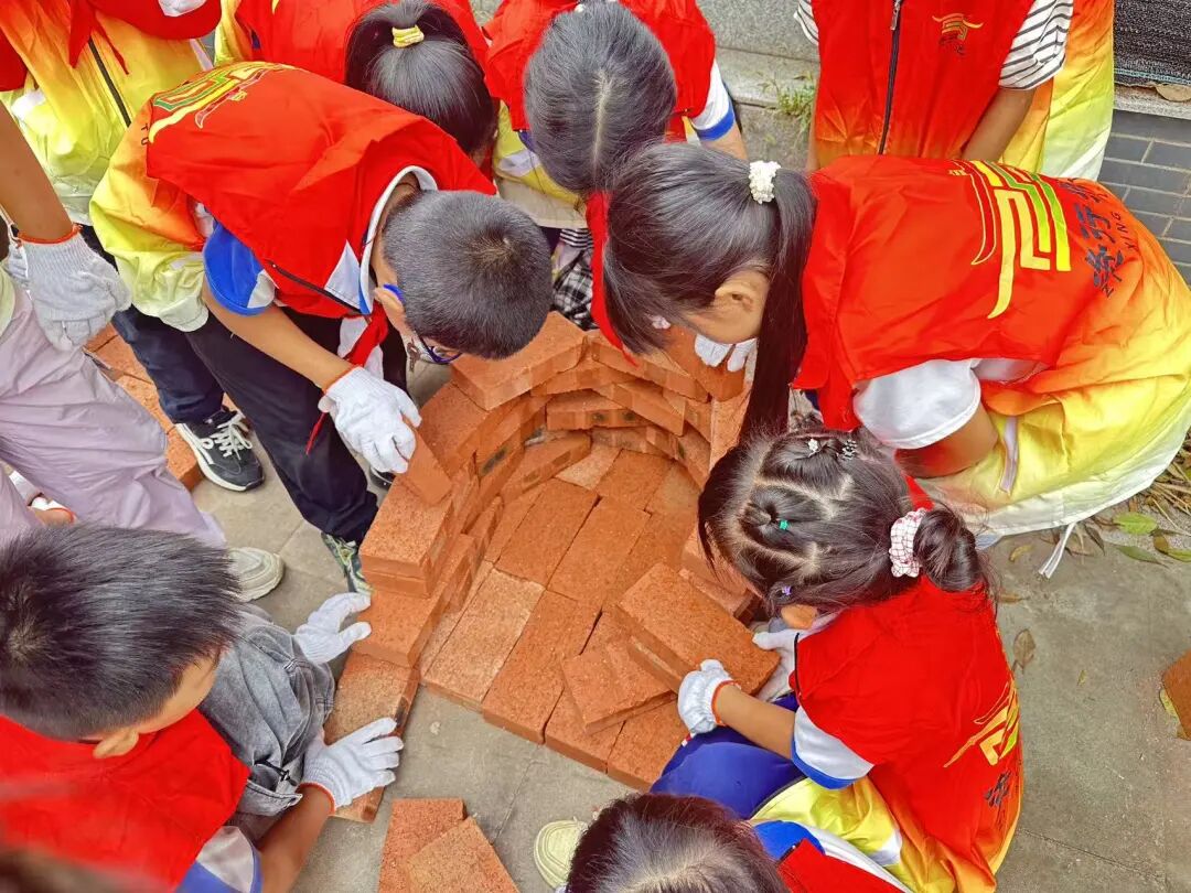 活动当日上午,同学们化身“小建筑师”,学习用砖块搭灶。从构思结构到亲手垒砌,大家忙得不亦乐乎。灶台搭好后,孩子们又变身为“小厨师”,自己生火、拎食材,亲手制作了一碗碗香喷喷的蛋炒饭。品尝着自己的劳动成果,孩子们脸上洋溢着自豪的笑容,也更深刻地体会到了“自己动手,丰衣足食”的道理。