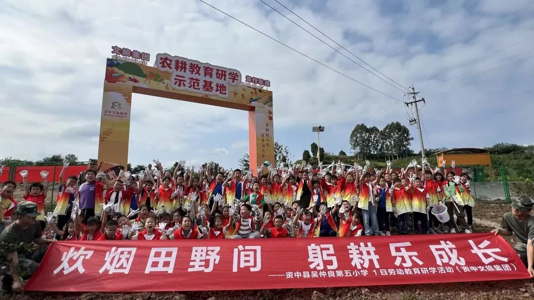 据悉,农耕教育研学示范基地位于资中县银山镇平安寨,由资中文旅集团建设运营,并纳入其研学品牌“资行乐途”体系。基地聚焦中小学生群体,是一个集农耕体验、知识科普与文化传承于一体的研学实践课堂。通过沉浸式的农事活动,让学生们在田野中学习知识、在劳作中感悟成长,生动传承千年农耕文明。