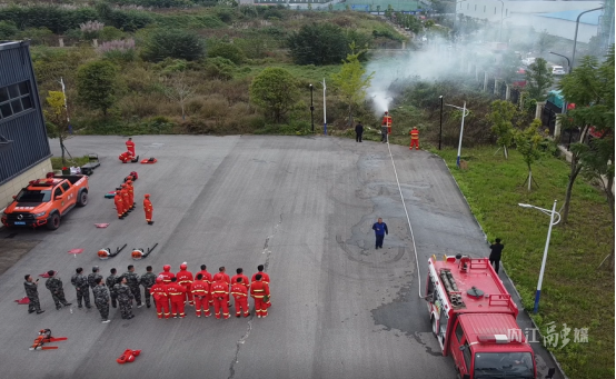 实战演练环节,现场模拟“山地火蔓延”场景,参训队伍按照“接警响应—现场研判—分工处置”流程,开展了无人机火情侦察、多组协同扑火、以水灭火等训练科目,迅速成功控制“火情”,进一步检验了队伍的协同作战能力。
