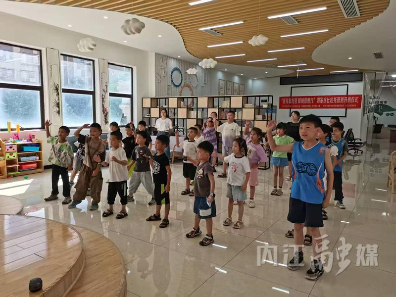 在市中区乐贤街道谢家坝社区党群服务中心二楼,360平方米的托育中心明亮温馨。“我们这里今年暑假有20多名孩子,他们在大学生志愿者的带领下,体验剪纸、书画等传统技艺课程及益智游戏等,孩子们都玩得很开心。家长向我们反映,孩子在这里学到了知识、交到了新朋友,还养成了良好的习惯。”谢家坝社区党群服务中心副主任宋莉说。