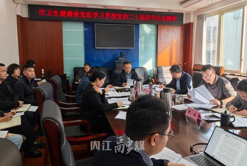 内江市卫生健康委员会召开党组(扩大)会,传达学习党的二十届四中全会精神,研究贯彻落实意见。会议强调,要把学习好、贯彻好全会精神作为当前和今后一个时期卫生健康系统的重大政治任务,统筹组织开展学习、宣讲。持续深化医药卫生体制改革,进一步健全公共卫生服务体系,加快普惠托育服务体系建设,推动中医药传承创新发展,提升群众健康素养。要持续推进巩固拓展脱贫攻坚成果同乡村振兴有效衔接工作,压紧压实安全生产责任,加强药品安全全链条监管。要统筹谋划做好卫生健康领域“十五五”规划,有序推进现有项目建设。