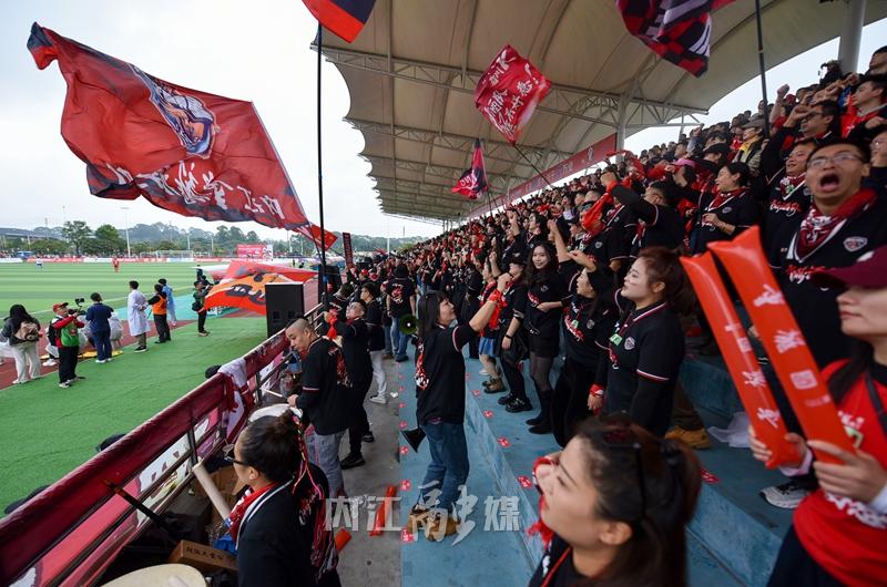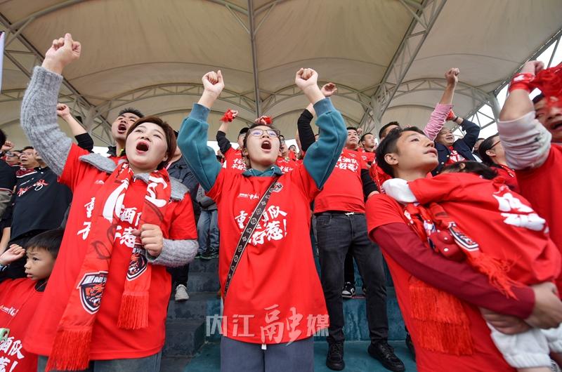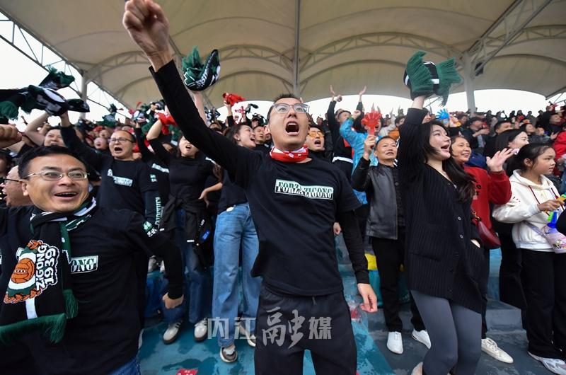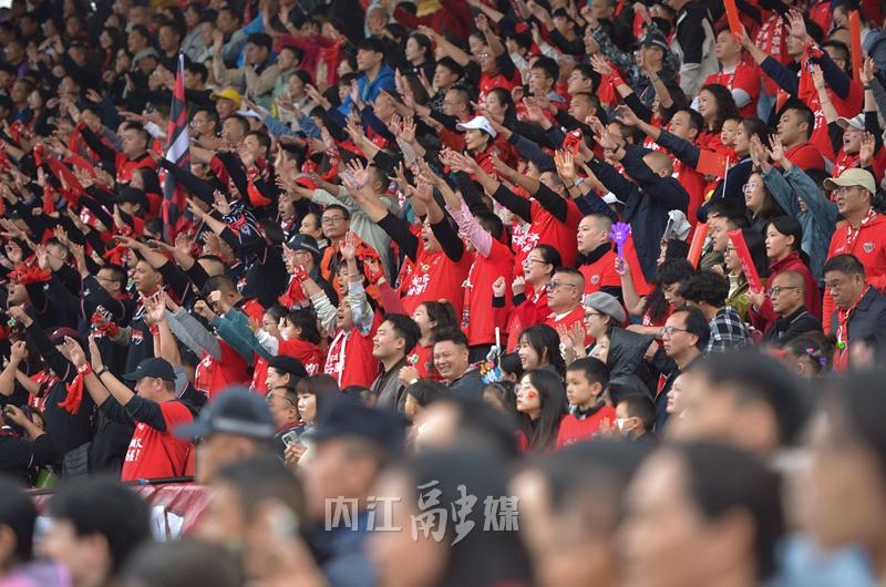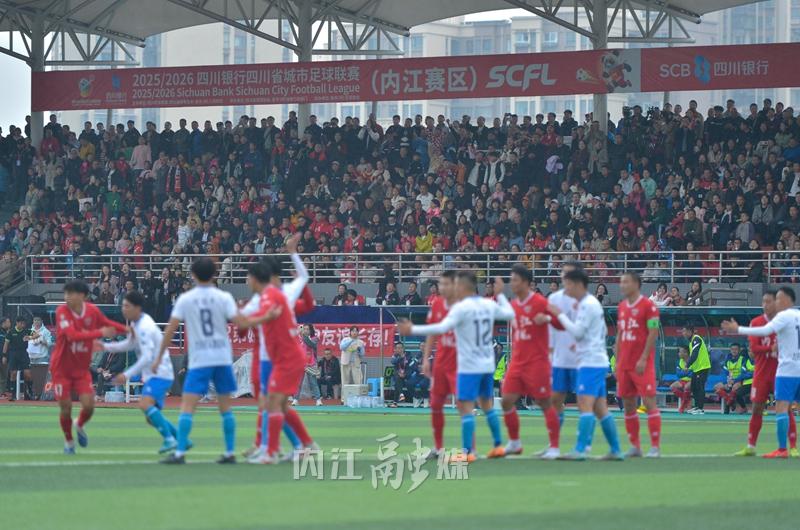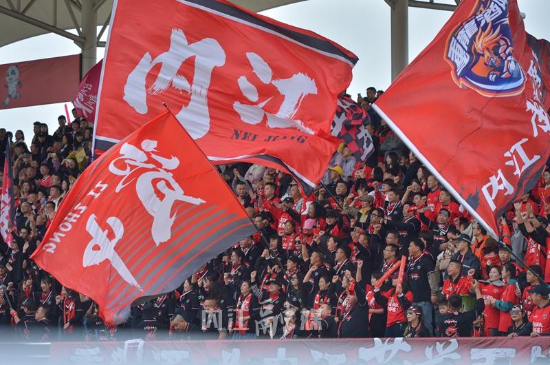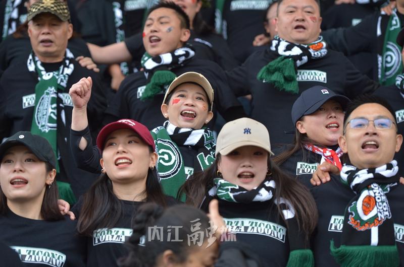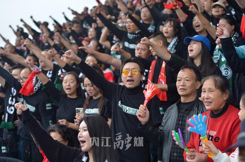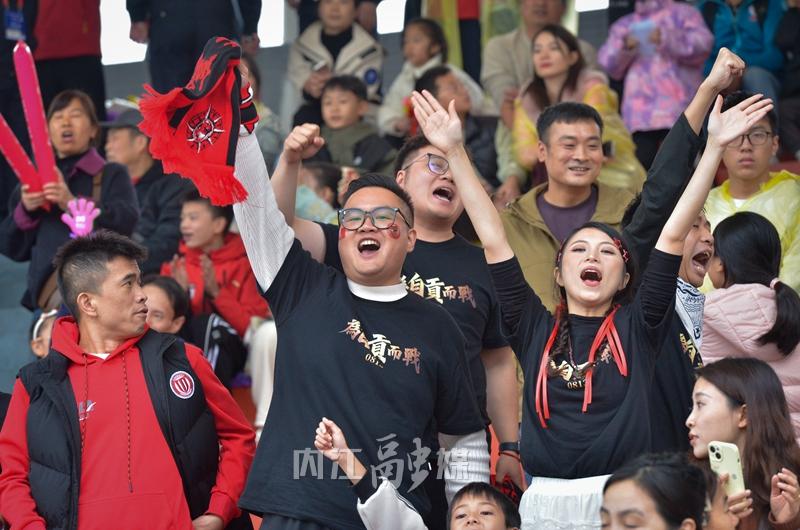 赛场内外,内江、自贡两队球迷的激情“PK”同样耀眼,成为本场赛事不容错过的“第二现场”。内江球迷的助威声震彻主场,自贡球迷也不甘示弱,嘹亮的歌声与震天的呐喊交替回荡在球场,将现场氛围一次次推向高潮,让整个赛场都沉浸在热血沸腾的竞技氛围之中。