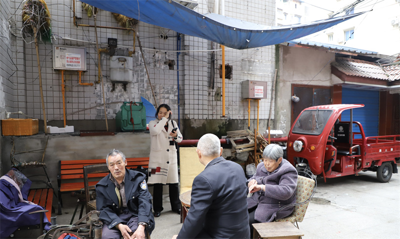 “修鞋子!”一位熟客远远便招呼着,顺便跟他开了个玩笑。李强明抬起头,脸上绽开朴实的笑容,用四川话和他交谈着。他的鞋摊旁,常年放着两根长凳,这几乎成了巷子的一个“信息交流站”。买完菜回来的阿姨、遛弯回来的大爷,都喜欢在这里坐一坐,和他摆上几句“龙门阵”。家长里短、社会新闻,啥都能聊,欢声笑语间,时间仿佛也过得快了些。