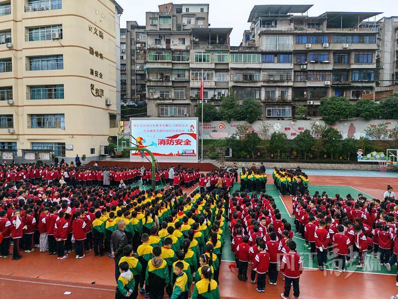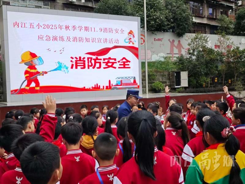 11月6日下午,内江五小校园内突然响起急促的火警声,内江经开区消防救援大队组织的“11·9”消防安全应急演练及消防知识宣讲活动正式拉开序幕。