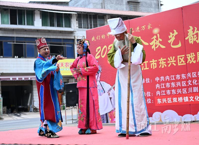 近段时间,东兴区采取“区镇联动”的办法,以“金秋艺韵·点亮东兴”为主题,精心组织精彩的戏剧节目,在各镇(街道)、村(社区)、学校、敬老院免费演出,丰富群众精神文化生活。