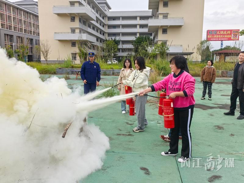 “大家别慌,对准火根喷,左右摆动覆盖火苗!”在消防员的鼓励下,工作人员分组轮番上阵实操,面对熊熊燃烧的模拟火点,起初还有些紧张的他们,很快按照要领一步步操作起来。消防员则在旁指导,及时纠正问题,耐心解答疑问,直到大家都能熟练、规范地完成灭火操作。