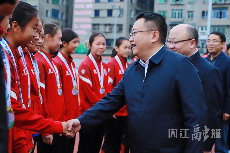 11月11日,资中县委书记唐荣带队到资中县体育场,代表县委、县人大常委会、县政府、县政协和全县人民向勇夺第六届全国“体校杯”足球比赛女子U15组冠军的参赛队伍表示热烈祝贺,向资中女足全体队员、教练员致以诚挚问候。县委副书记、县长王冬,县人大常委会主任李贤英,县政协主席王孔强,县委副书记黄振国,县委副书记彭利参加。