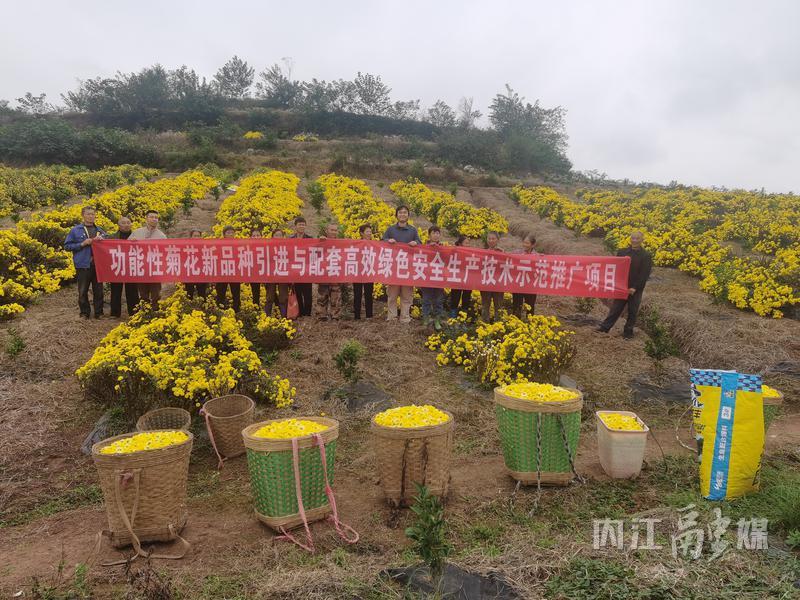 据了解,该项目由四川梓橦宫药业股份有限公司、内江市农科院林科所、北京市农林科学院联合实施,核心是引进北京市农林科学院优质的功能性菊花新品种与高效绿色安全生产技术,打造集示范、科研、生产于一体的现代化基地。
