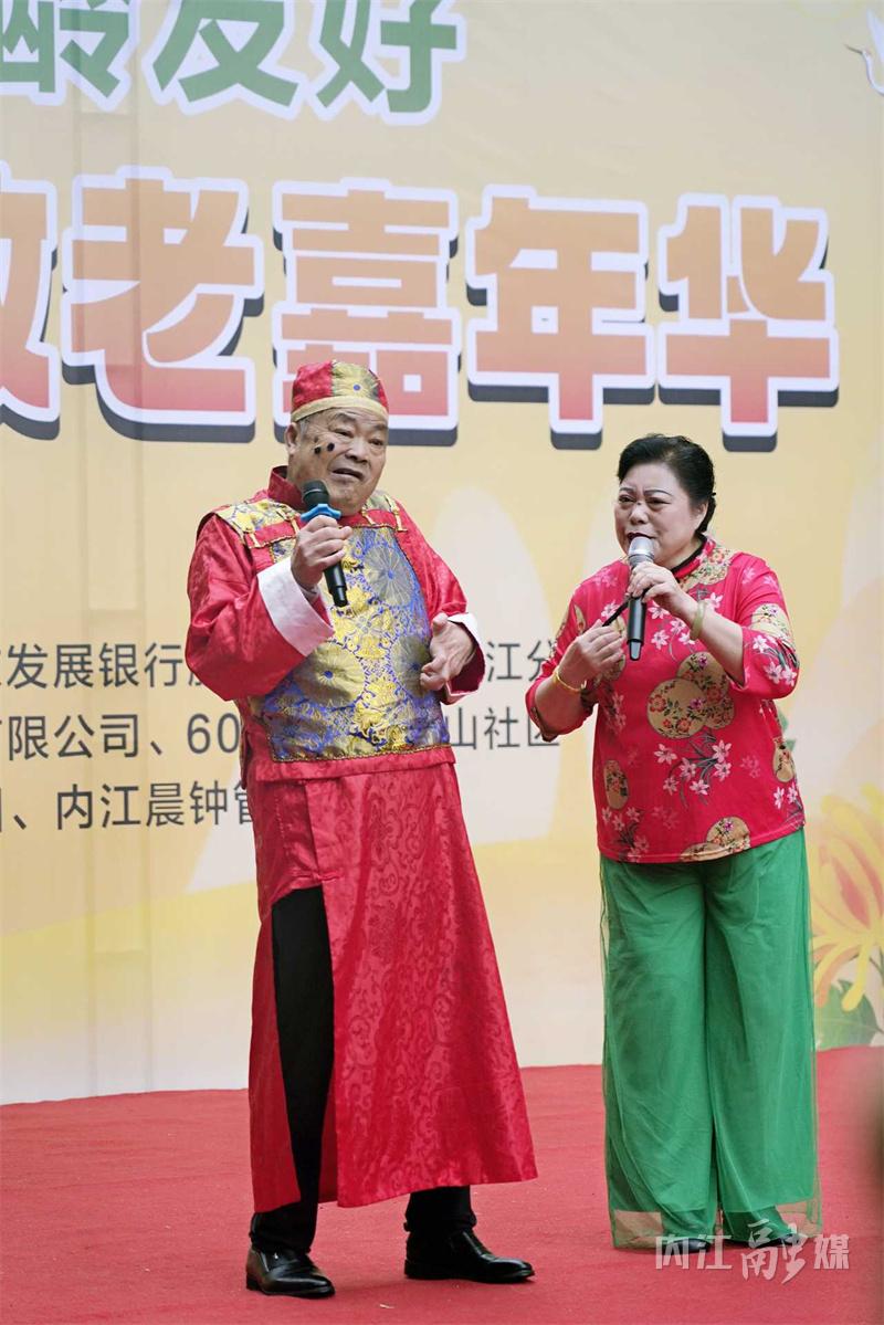 文艺表演环节将气氛推向高潮。各社区文艺队伍轮番登场,607社区的男声小合唱《游击队之歌联唱》以激昂的旋律拉开欢乐序幕;随后,独唱《北京的金山上》、小品《新坨子回门》、京剧《沙家浜·智斗》选段、川剧绝活《变脸》等节目接连上演,传统经典的独特韵味让老人们沉醉其中。内江阳光幼儿园的孩子们带来了《听我说》幼儿舞蹈和《中华孝道》手语舞,天真烂漫的表演传递着孝老爱亲的纯真情感。孩子们还向爷爷奶奶送上了亲手制作的贺卡,暖心的举动赢得了全场热烈的掌声。