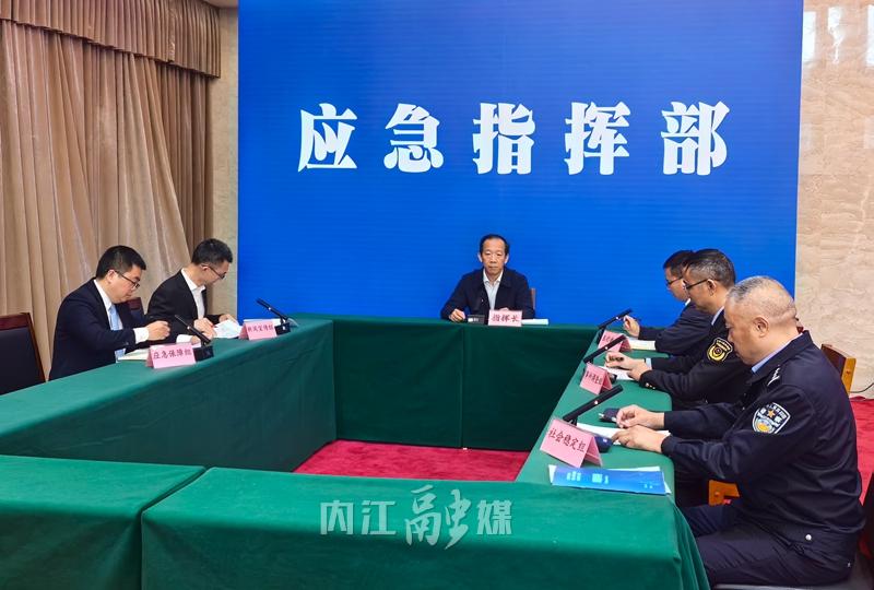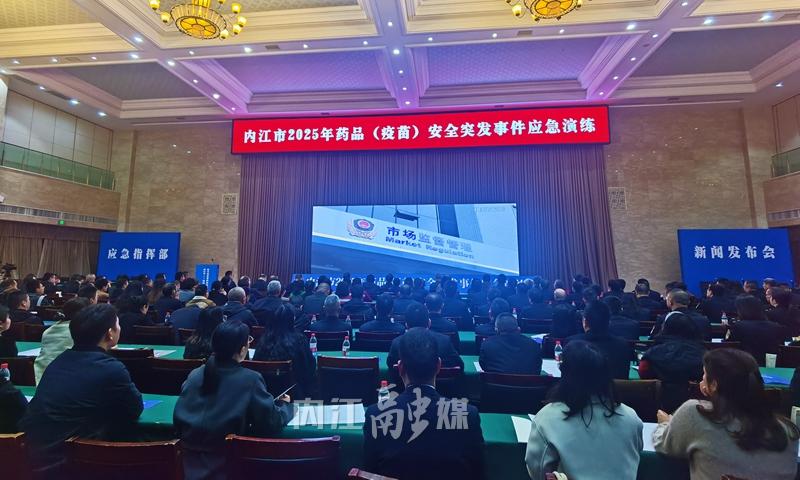 现场最受关注的,当属应急指挥部第二次会议暨新闻发布会模拟。指挥部内,应急保障组、社会稳定组等四组集中会商,围绕事件调查、风险评估、后续处置明确分工、细化举措,确保决策高效闭环;新闻发布会上,市市场监管局、市卫生健康委及资中县政府相关发言人,及时通报处置进展、疫苗核查情况及公众防护建议,主动回应社会关切,完整展现了信息公开与舆情应对的规范流程。