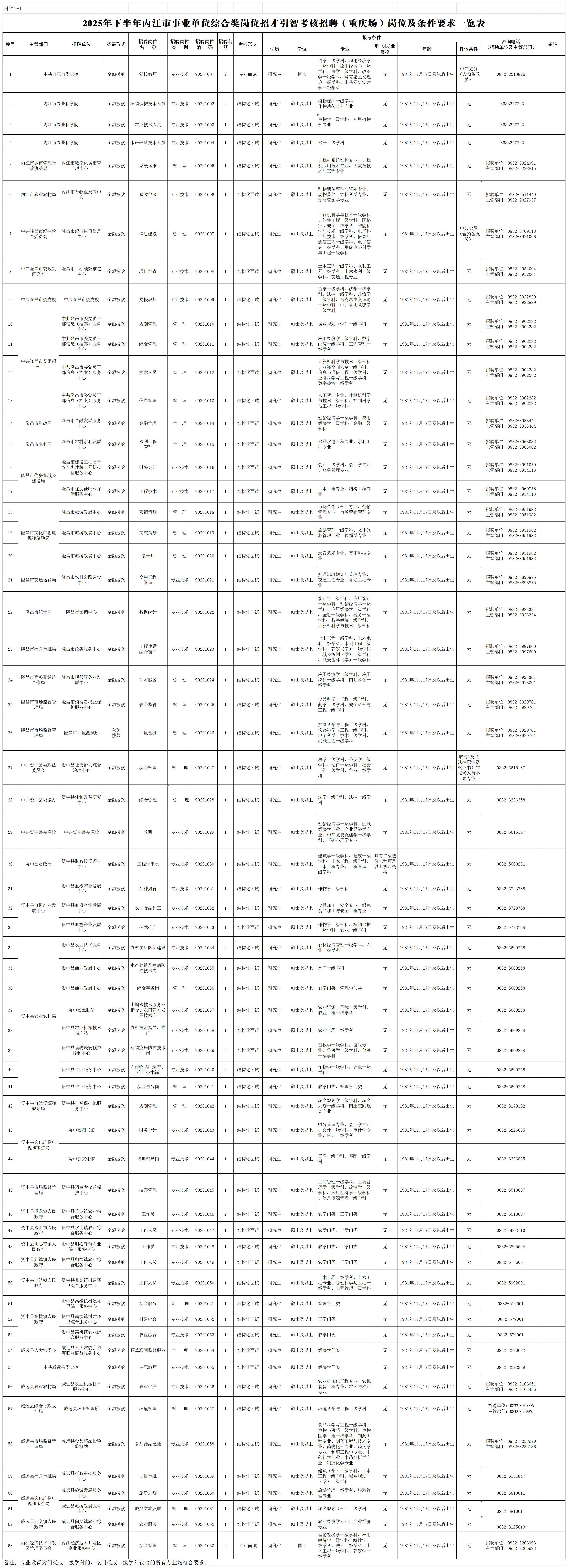 (2)中小学教师岗位:详见公告后面的岗位及条件一览表