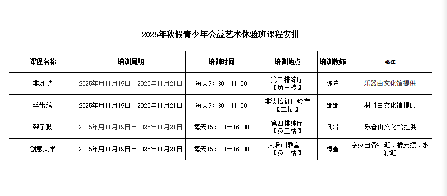 1、我馆开展的公益性培训课程属于公益性质,因任何活动都具有一定风险性和不可预知性,请各学员根据自己的身体情况谨慎报名,因个人身体原因发生的一切意外责任自负。