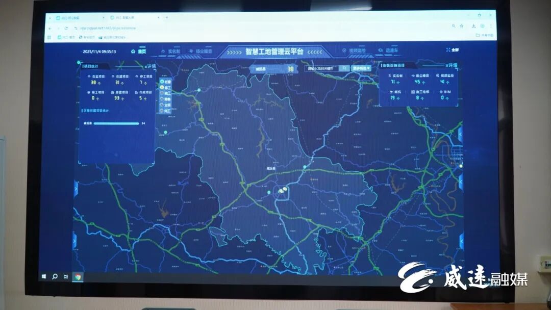 当然,工地能一直保持 “清爽”,不光靠施工方主动担当,更有主管部门的“智慧监管”在背后托底。在威远县住房城乡建设局质安站,一块 “智慧工地管理平台” 大屏格外显眼,全县30多个在建工地的扬尘、噪音数据,24小时都能实时监控。