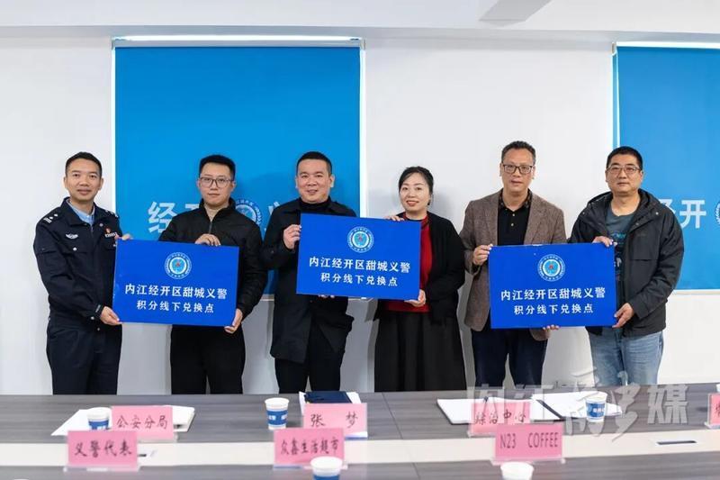 11月13日,内江经开区义警协会举行积分兑换启动仪式,为积分线下兑换点授牌,并向“甜城义警”代表发放积分卡。今后,全区“甜城义警”只要协助公安机关参与治安巡逻、矛盾调解、反诈宣传等平安服务,都能获得相应积分,并在爱心商家处免费兑换相应价格的商品或服务。