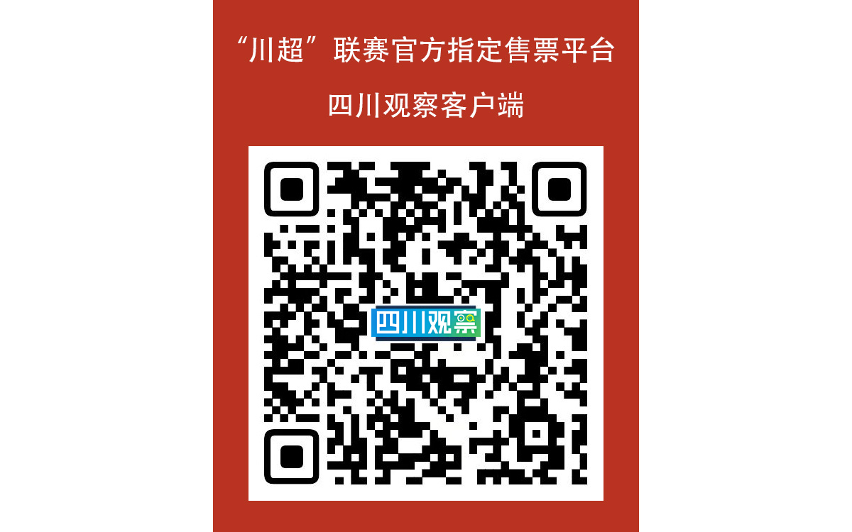 1、“川超”官方指定售票平台为四川观察客户端。应用商店搜索“四川观察”或识别下方二维码下载“四川观察”客户端并登录。