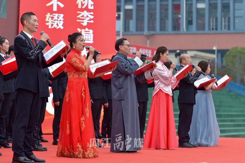 精彩纷呈的文艺汇演将庆典气氛推向顶点。演出以“筚路创校”“踔厉发展”“激昂鼎兴”为篇章,通过歌舞、情景剧、朗诵等多种艺术形式,生动勾勒出学校百年砥砺前行的壮阔画卷,深情回望办学征程中的风雨与荣光,展现新时代二中人昂扬向上的精神风貌。