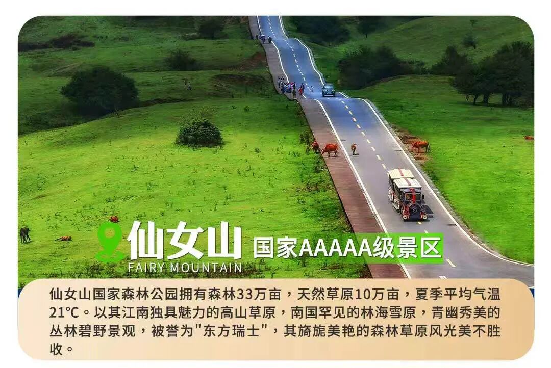 行:在指定地点集合后,我们领取物资、相互认识,而后我们一路前行,下午游仙女山景区,晚上给大家备好了晚宴,一起迎接美好的旅程吧!