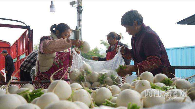 据了解,该蔬菜现代农业园已历经4年悉心经营,如今形成了“产销两旺”的良好局面。清洗后的圆根萝卜,一部分会送往内江本地各大商超,另一部分将发往全国各地;而长萝卜作为在国外颇受欢迎的品种,主要通过专业外贸渠道,远销韩国、泰国等国家和地区。