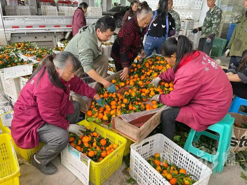 采摘后的鲜果,会立即进行分拣、包装,通过物流发往全国各地。“建议选择个头中偏小的中型果,这类果子通常皮薄细、甜度高,过大或皮糙的果实口感会稍逊一筹。”明欣园种植农民专业合作社基地负责人李森林分享了挑选砂糖橘的技巧。