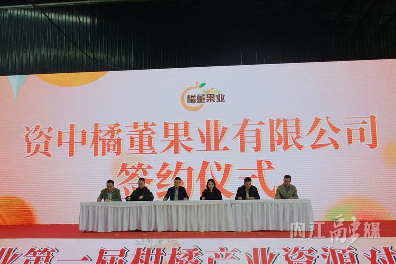 活动当天还举行了签约仪式。果商、超商等代表与资中橘董果业有限公司达成战略合作,协议约定在2025年11月至2026年6月期间,完成柑橘总销量2630万斤,预计加工果总量3000万斤,全年销售目标达1.1亿元。这一合作将有力促进资中果农增收,推动当地柑橘产业高质量发展。