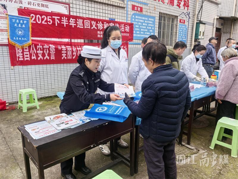 11月19日,隆昌市公安局交通管理大队联合辖区医院在金鹅街道山川社区开展“交通安全宣传+健康义诊”便民服务活动,将安全知识与健康关怀送到群众“家门口”。