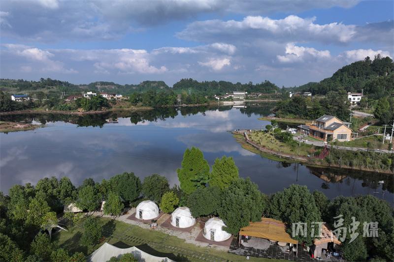 老寨子村的魅力不止于“好耍”,更在于其“乡村生命力”。作为资中县“五好两宜”(规划好、建设好、环境好、经营好、乡风好、宜居宜业)和美乡村试点核心区,这个依山傍水的村落凭借创新机制激活资源,走出一条乡村振兴之路。过去进村道路泥泞,如今新改建的道路与步道串联起山水风光,2个生态广场、休憩驿站、1个农产品交易市场和老者食堂便利了村民生活;7.7公里水库水岸线完成生态修复,千余平方米边坡得到加固,湖畔露营基地更成为网红打卡地。