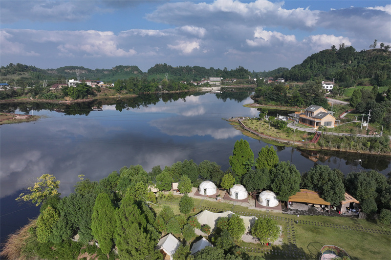 风光是三合村的“颜值”,特色产业则是其“灵魂底蕴”。村内的特色展示馆藏着川渝风味的密码,数十种特产琳琅满目,是川渝合作的生动结晶。旅行于此,还可在“合宿”“云栖小筑”等特色民宿中找到“家”的归属感,推窗见绿、出门即景,夜晚伴着虫鸣入眠。