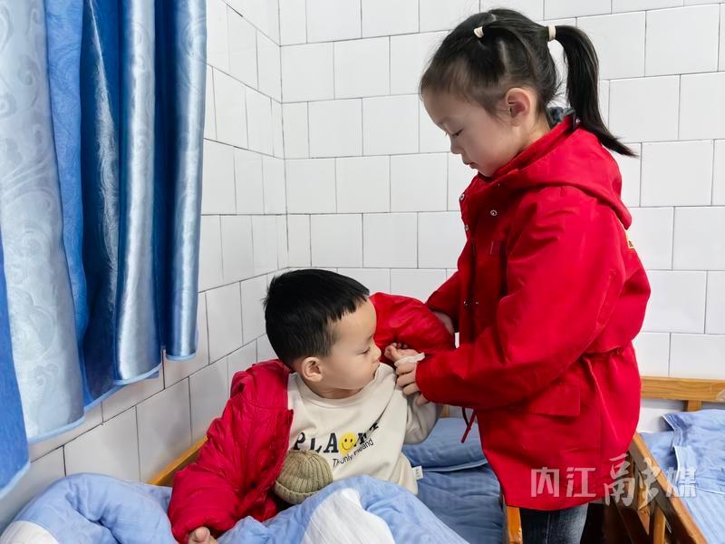 大带小结对,温情暖校园。大班幼儿化身“知心哥哥姐姐”,与小班、中班的弟弟妹妹结对,耐心协助其穿衣、整理玩具,守护他们的安全。小龄幼儿在关怀下克服了陌生感,大龄幼儿在付出中学会了责任与包容,实幼园区处处涌动着暖心氛围。