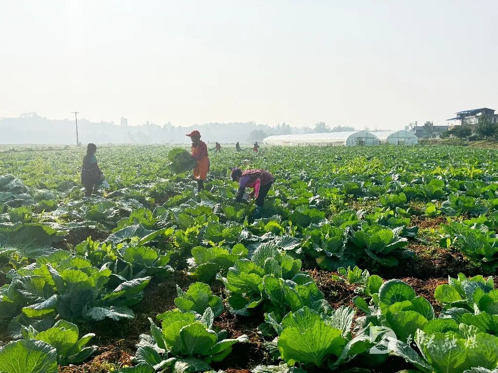 50多岁的吴付翠和李运慧是水梨村本地人,她们一边利落地收割莲白,一边笑着说:“在家门口干活,一天能挣70元,够吃够穿,还能存点小钱,比外出打工强多了。”对许多中老年村民而言,基地务工不仅是一份收入,更是一种生活的踏实与归属。